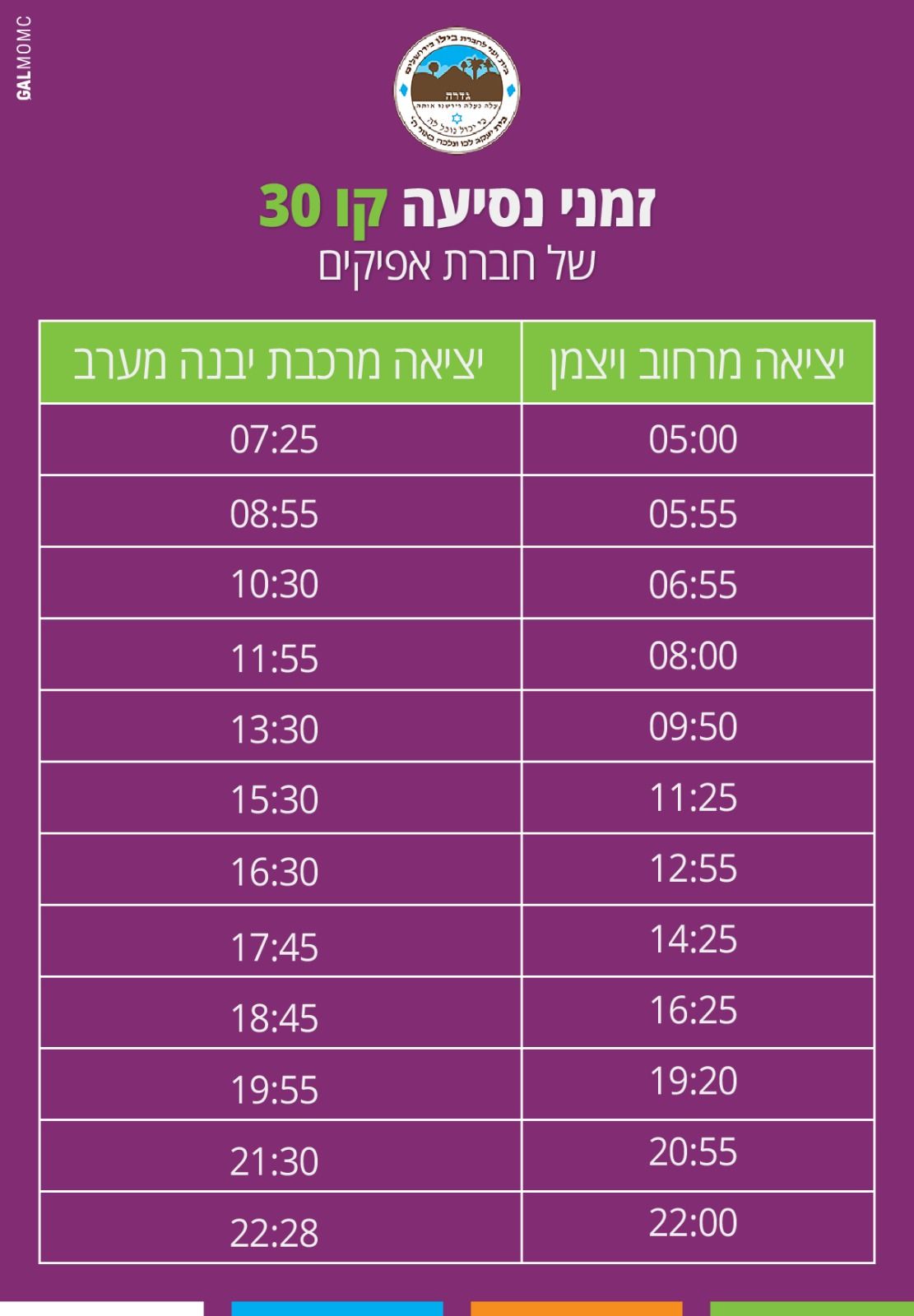 הודעה חשובה לתושבי גדרה הנוסעים ברכבת! החל מיום ראשון 31.3 שעות פעילות קו 30 של אפיקים יסוכרנו עם הגעת רכבת יבנה מערב ופעילות הקו תתוגבר בשעות השיא