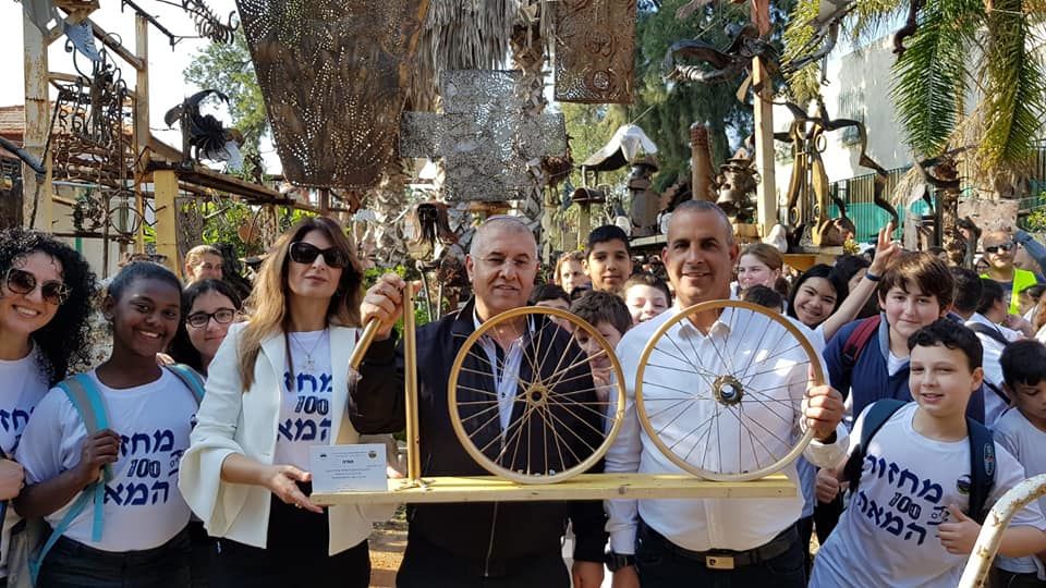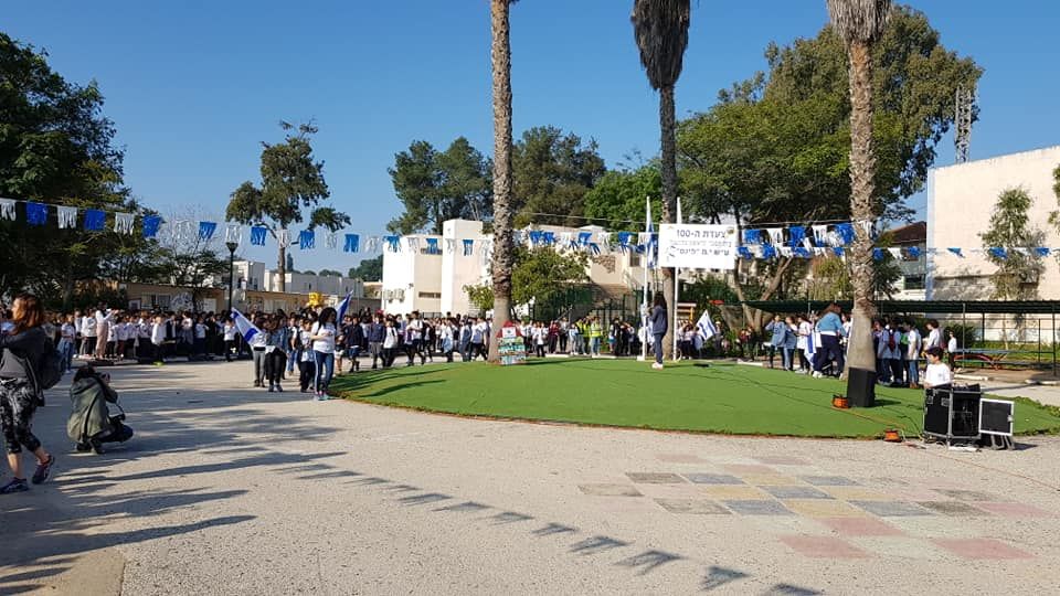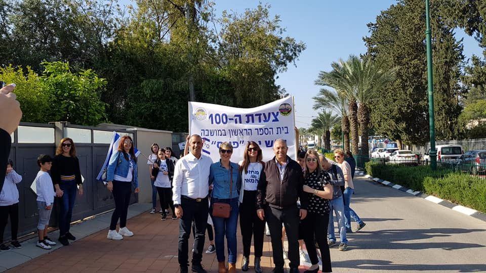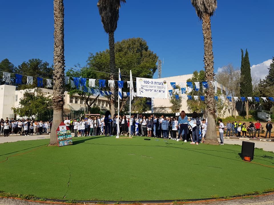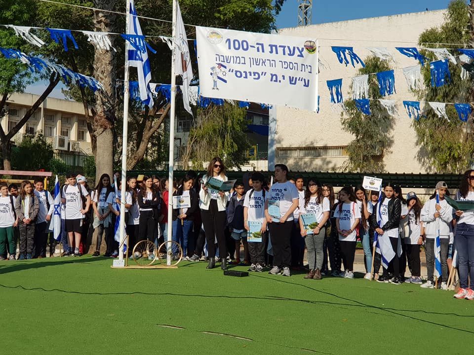 חוגגים 100 לפינס! לרגל חגיגות מחזור המאה לביה"ס פינס בגדרה יצאו התלמידים לצעדה עם שלטים ודגלי ישראל ברחבי המושבה