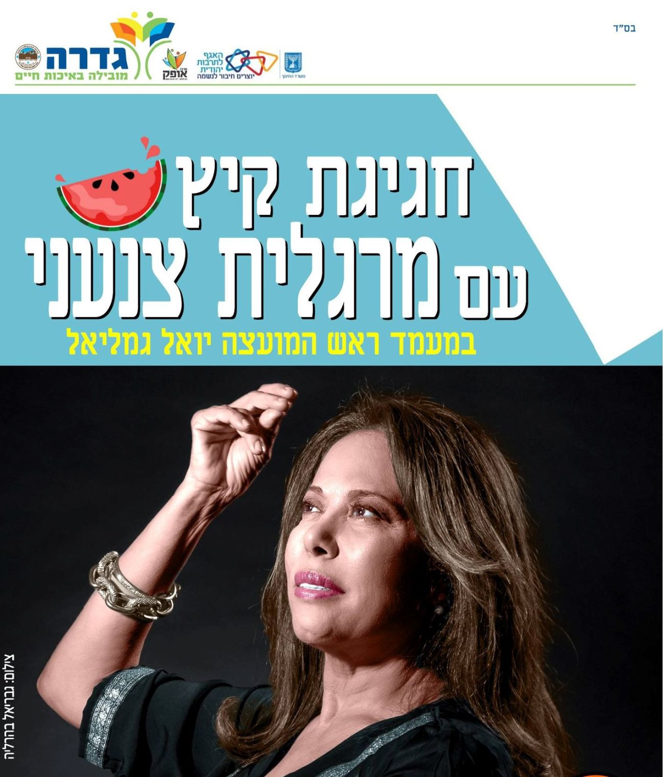 שבוע עמוס באירועים מחכה לתושבי גדרה! במשך יומיים יהנו התושבים מהופעות של עדן בן זקן ואנה זק (12.8) ומרגלית צנעני (14.8)