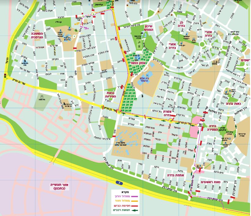 | צומת הרחובות בן גוריון - בן גפן עד לצומת רחובות פינס- בן גוריון בשני הכיוונים | בין השעות 08:00-10:00 |