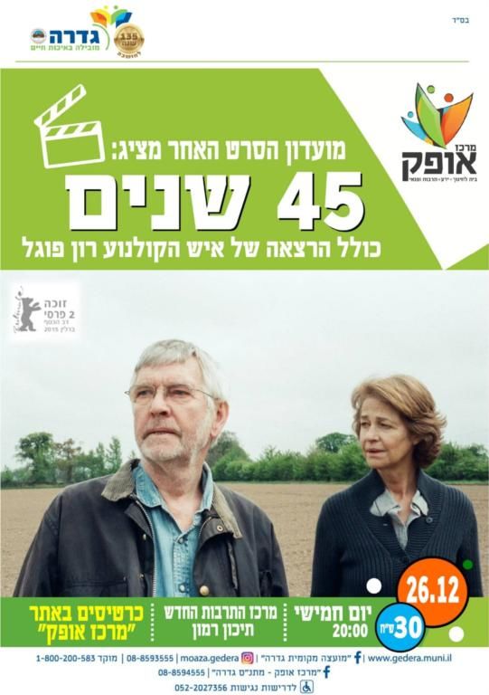 מועדון סרט אחר – הקרנת הסרט 45 שנים+ הרצאה של איש הקולנוע רון פוגל