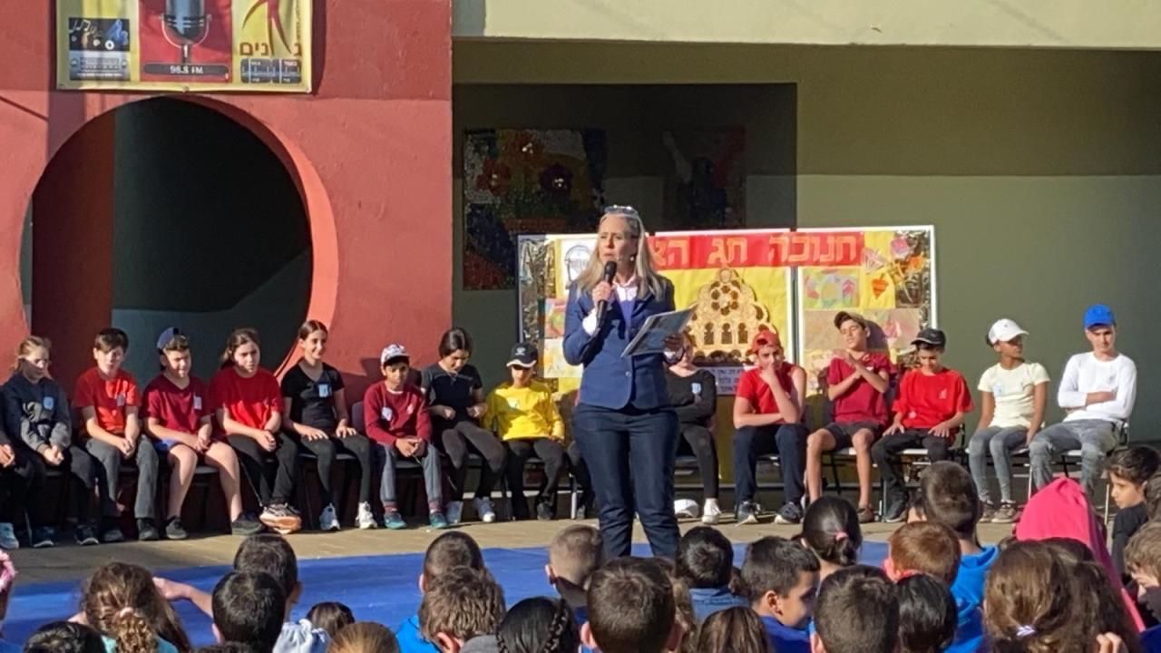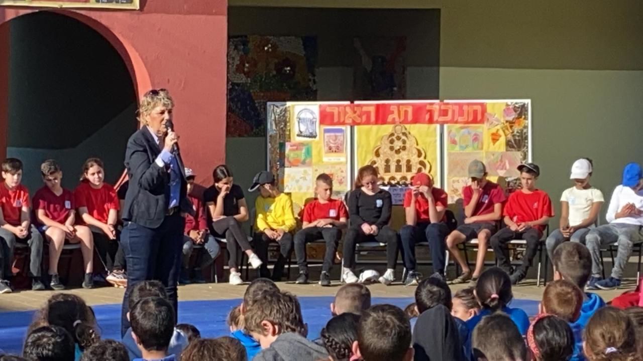 הדגישה בדבריה כי ביהדות מיצג האור הינו סמל לחסד, לרצון טוב, למוסריות ולהסברת פנים, סמל לדבר נעים ומהנה, סמל לנאורות ולחכמה, ליופי, ולאושר. הדבר בא לידי ביטוי ב"חנוכיית הערבות ההדדית" אשר עוצבה על ידי תלמידי כיתת האומן בהנחיית המורה ניצה ויסל. "האור - יש בו כדי לעודד ולהפיח תקווה כפי שנזכור את רווית שלנו היקרה ונפיץ אורה ברבים על פי צו משנתה החינוכית"
