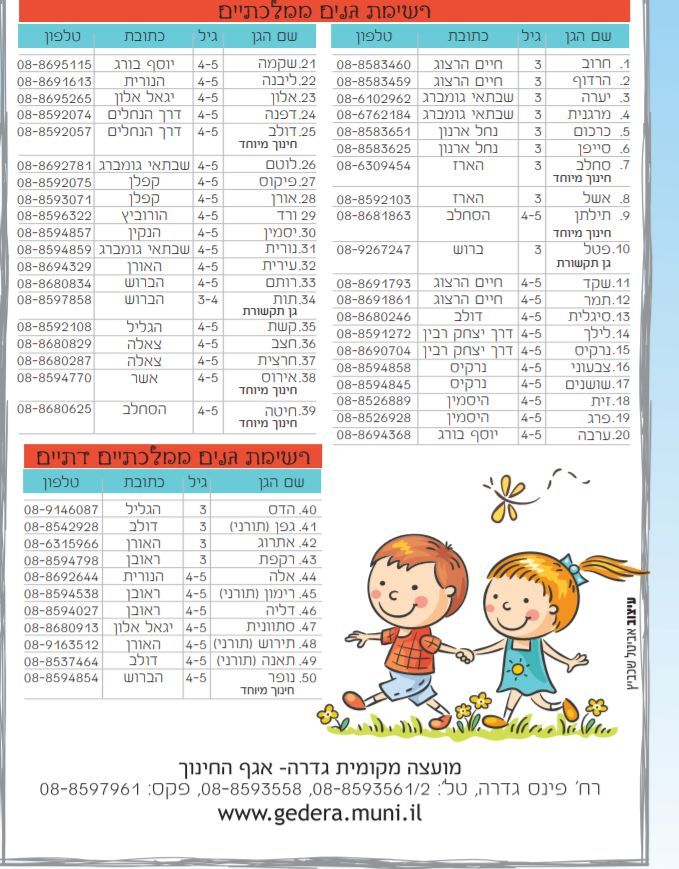למעבר לחוברת המידע גני הילדים: http://www.gedera.muni.il/uploads/rishum-ganim-tashpa.pdf