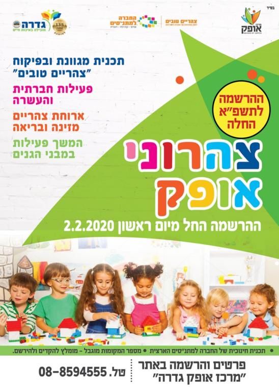 הורים המעוניינים לרשום את ילדיהם לצהרוני מרכז אופק - השיבוץ יעשה לאחר שיבוצי גני הילדים בחודשים יולי-אוגוסט.