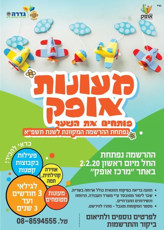 תזכורת להורי גדרה! היום (ראשון 2.2) נפתחה ההרשמה למעונות, צהרונים , גני הילדים וילדי כיתות א' במועצה