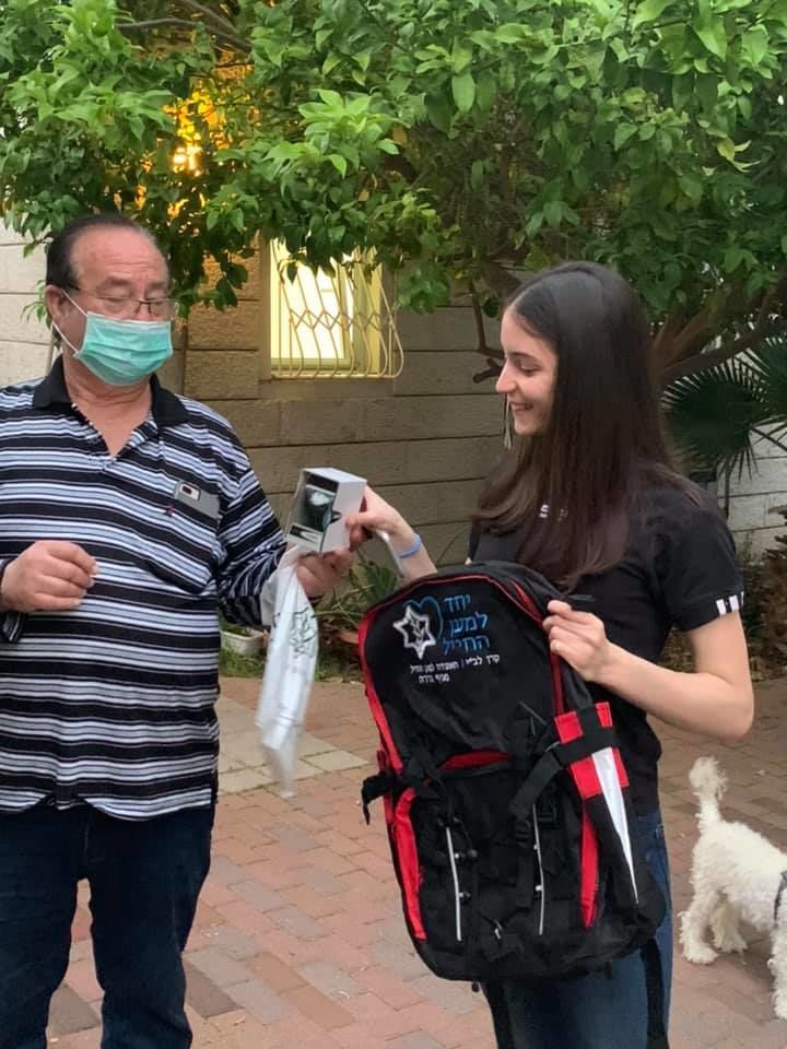 רגע לפני הגיוס, יו"ר האגודה יחד למען החייל, יגאל גלסנר העניק לה את השי למתגייסים ואיחל לה בהצלחה בשירות הצבאי.