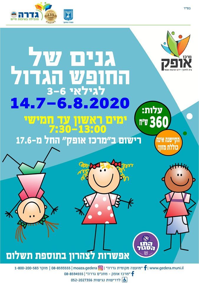 לידיעת ההורים בגדרה! ביום רביעי 17.6 תפתח ההרשמה לקייטנות הקיץ לגני הילדים ותלמידי כיתות א-ד