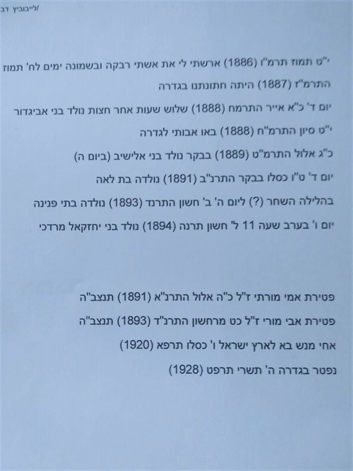 הסידור העתיק שהתגלה הודפס בשנת 1873 בוורשה ולאחר בדיקתו של הסידור על ידי אריה קליין, תושב גדרה התגלה כי על הסידור כתב לייבוביץ תאריכים חשובים בתולדתו משפחתו.