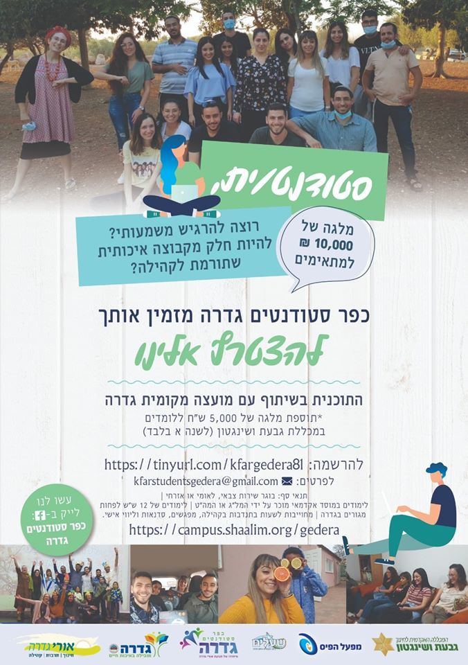 לפרטים נוספים ועדכונים דף הפייסבוק של כפר סטודנטים גדרה