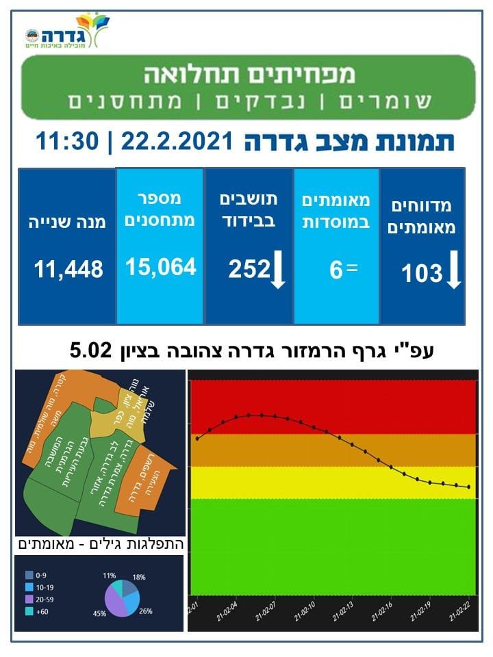 נתוני התחלואה בגדרה נכון ליום שני 22.2