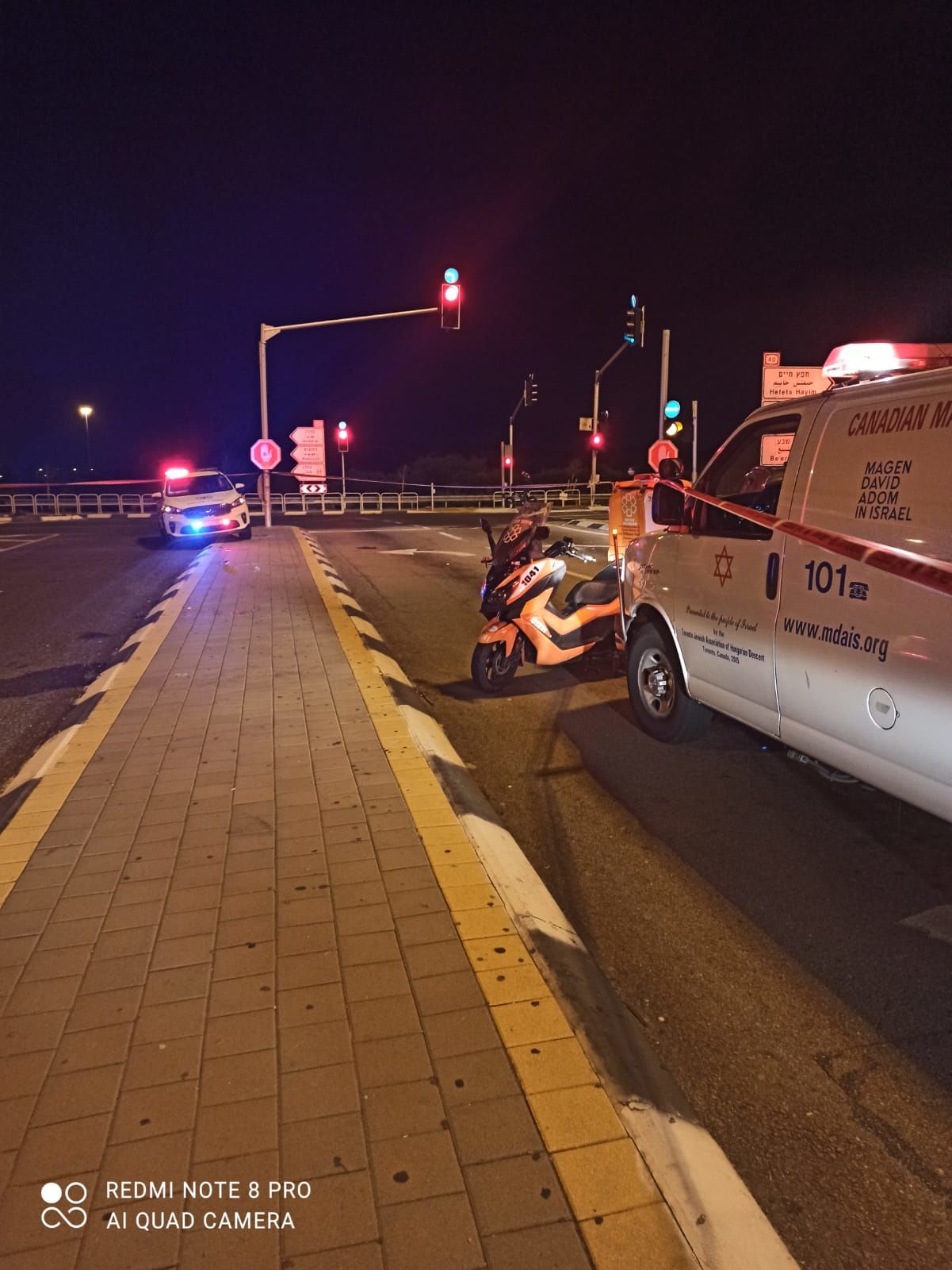 "הפצוע שכב על אי התנועה בין הנתיבים כשהוא בהכרה וסובל מפציעות מדממות בראשו ובגפיים. הענקנו לו טיפול רפואי מציל חיים שכלל חבישות, עצירת דימומים ומתן חמצן. העלנו אותו במהירות לניידת טיפול נמרץ ופינינו אותו במצב קשה ויציב לבית החולים."