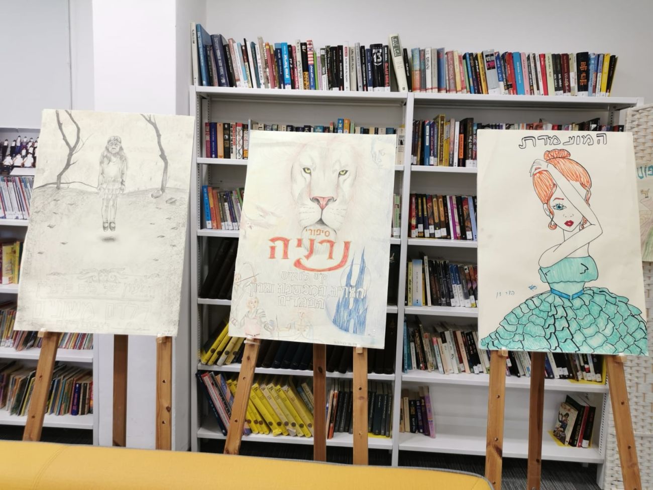 לרגל שבוע הספר מוצגת בתיכון דרכא רמון תערוכת הציורים של תלמידי בית הספר בהשראת הספרים האהובים אליהם
