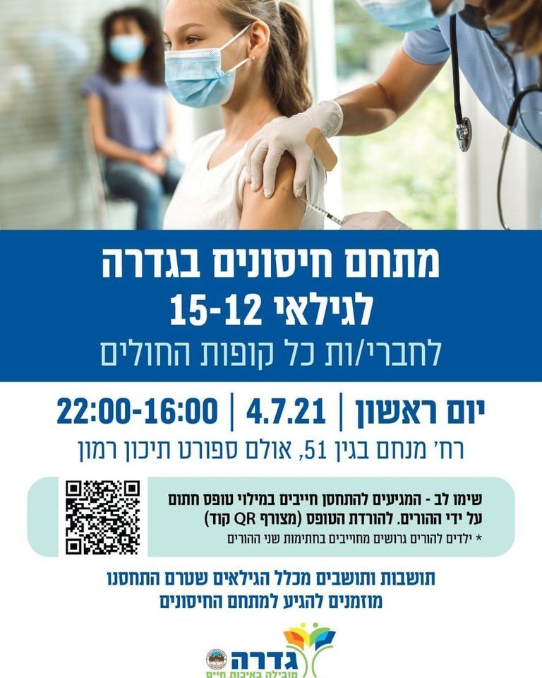 יום חמישי 1.7 תחלואת הקורונה בגדרה: כ60 תושבים נמצאים בבידוד וביום ראשון 4.7 יפתח מתחם חיסוני קורונה לבני הנוער