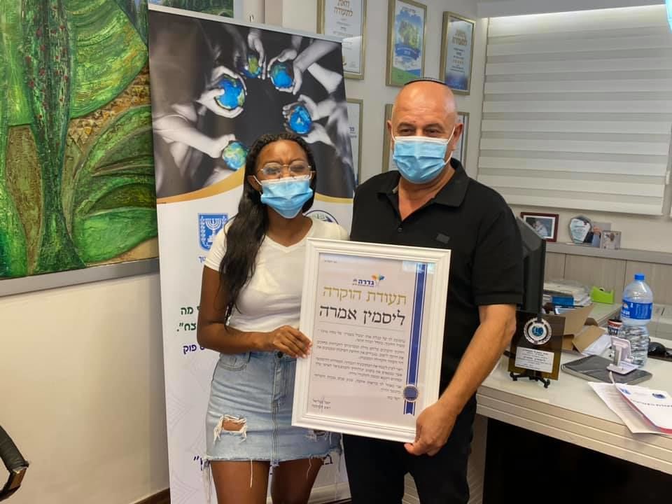 יסמין אמרה תלמידת דרכא נתיבי נועם גדרה קבלה את אות הפעיל המצטיין המחוזי של משרד החינוך