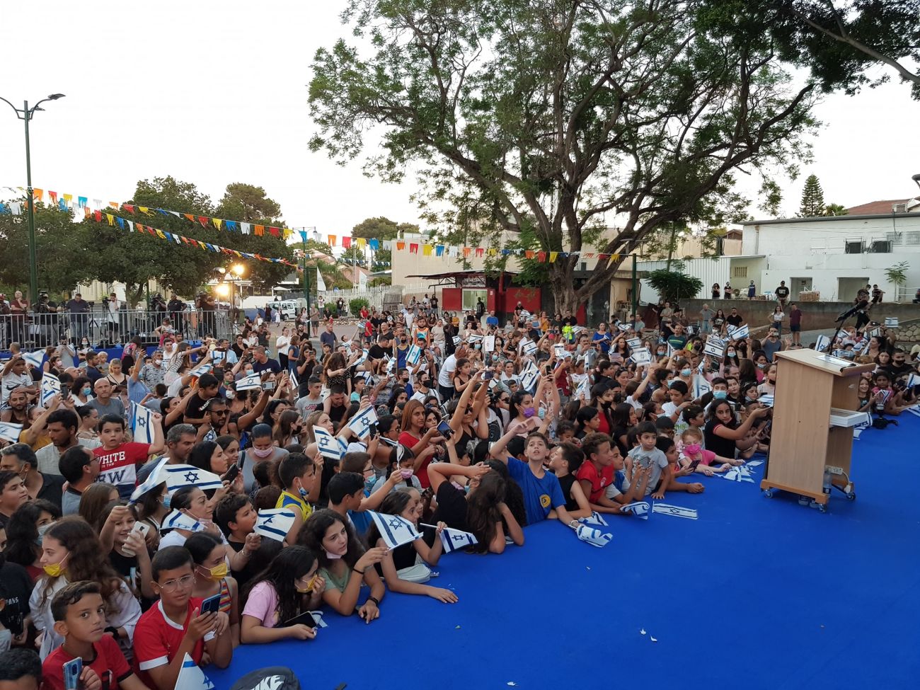 מאות התושבים שצבעו את רחבת המועצה המקומית גדרה, התמלאו גאוות יחידה כשצפו באבישג, תושבת היישוב מקבלת את אות הכבוד בקבלת הפנים שנערכה לכבודה.