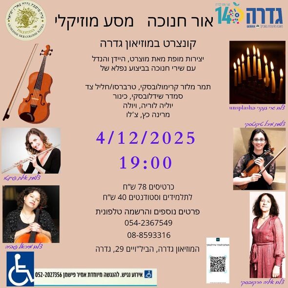 "אור חנוכה": מסע מוזיקלי חגיגי וקונצרט אינטימי יתקיימו במוזיאון גדרה ביום חמישי ה-4.12.2025