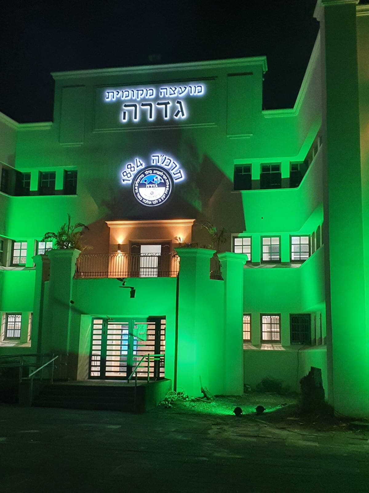 בניין מועצת גדרה הואר הלילה בירוק לאות יום ההוקרה לפצועי צה"ל ופעולות האיבה
