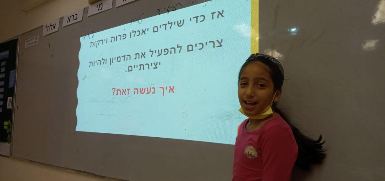 במסגרת שיעור מדעים בביה"ס אוהל שלום בגדרה, מצאה התלמידה ליה גשמא פתרון יצירתי לבעיה איך משכנעים ילדים לאכול פירות וירקות? - הכנת כריכים בצורות ודמויות