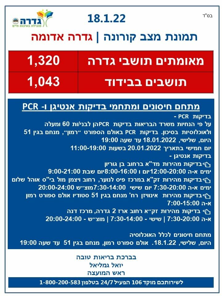 נתוני הקורונה בגדרה
