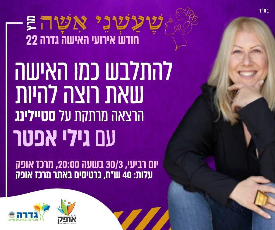 הרצאה בנושא סטיילינג עם גילי אפטר אילון- להתלבש כמו האישה שאת רוצה להיות