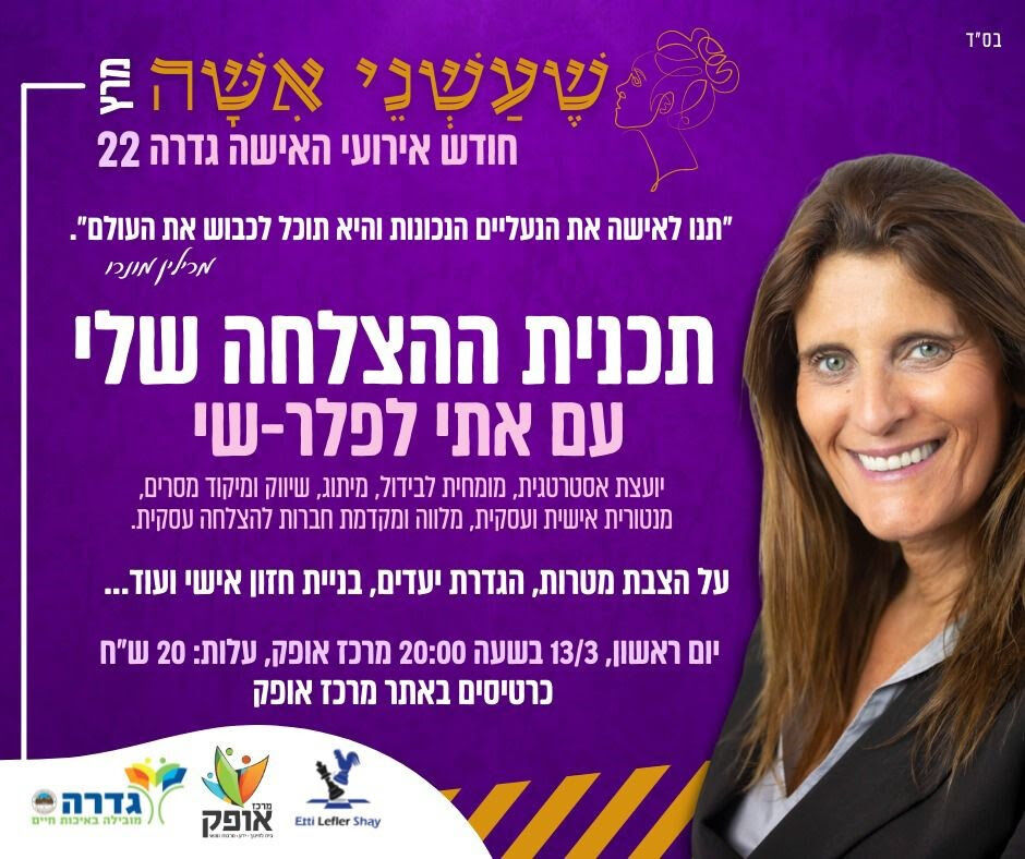 תכנית ההצלחה שלי עם אתי לפלר- שי שתדבר על הצבת מטרות, הגדרת יעדים, בניית חזון אישי ועוד.