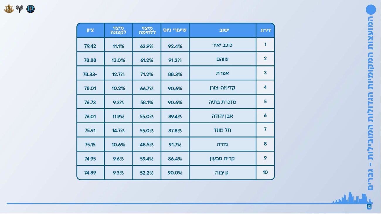 כאשר מסתכלים על המועצות האזוריות והמועצות המקומיות הנתונים מראים כי היישובים המובילים בנתוני הגיוס הם: