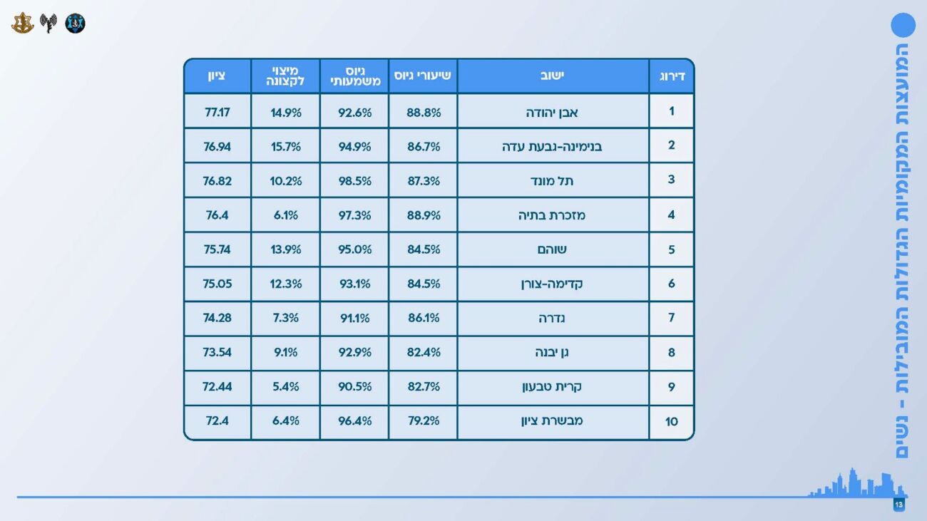 דירוג המקומות הראשונים בישראל על פי הקטגוריות השונות: