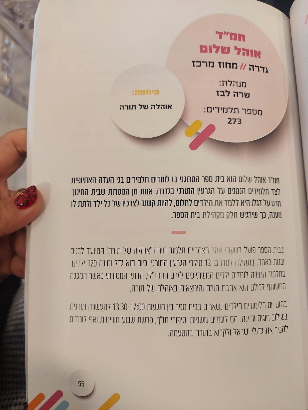 בית ספר אוהל שלום בגדרה זכה באות חסד וחמ"ד של מינהל החינוך הדתי של משרד החינוך (חמ"ד)