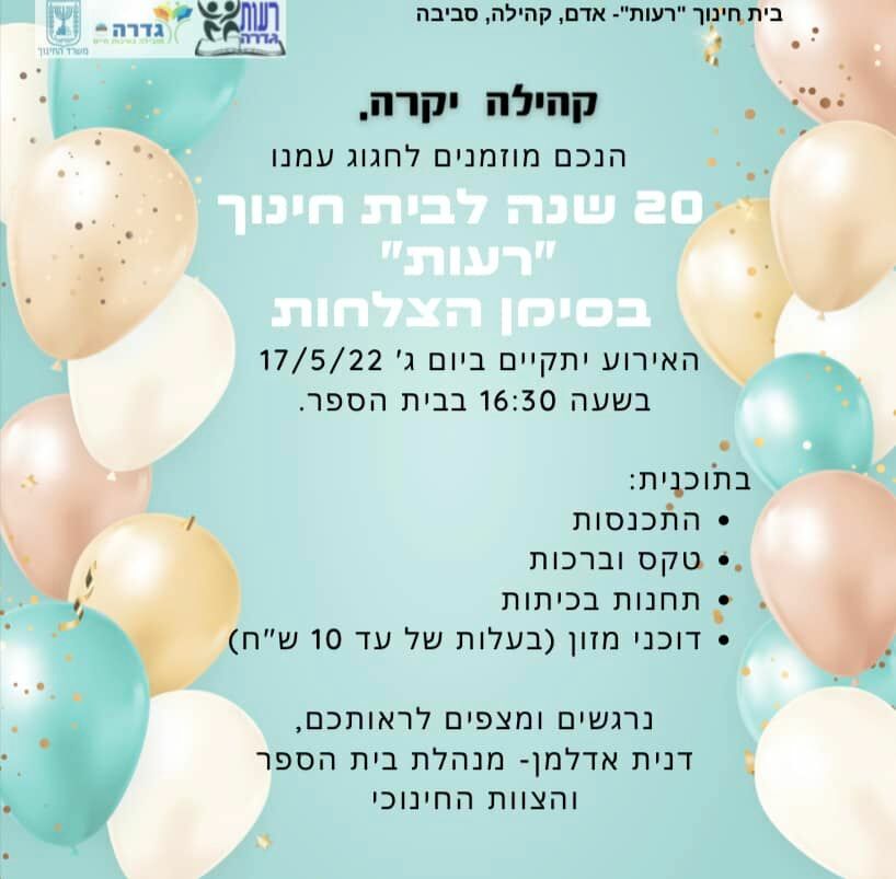 בית ספר רעות בגדרה חוגג 20 שנה!