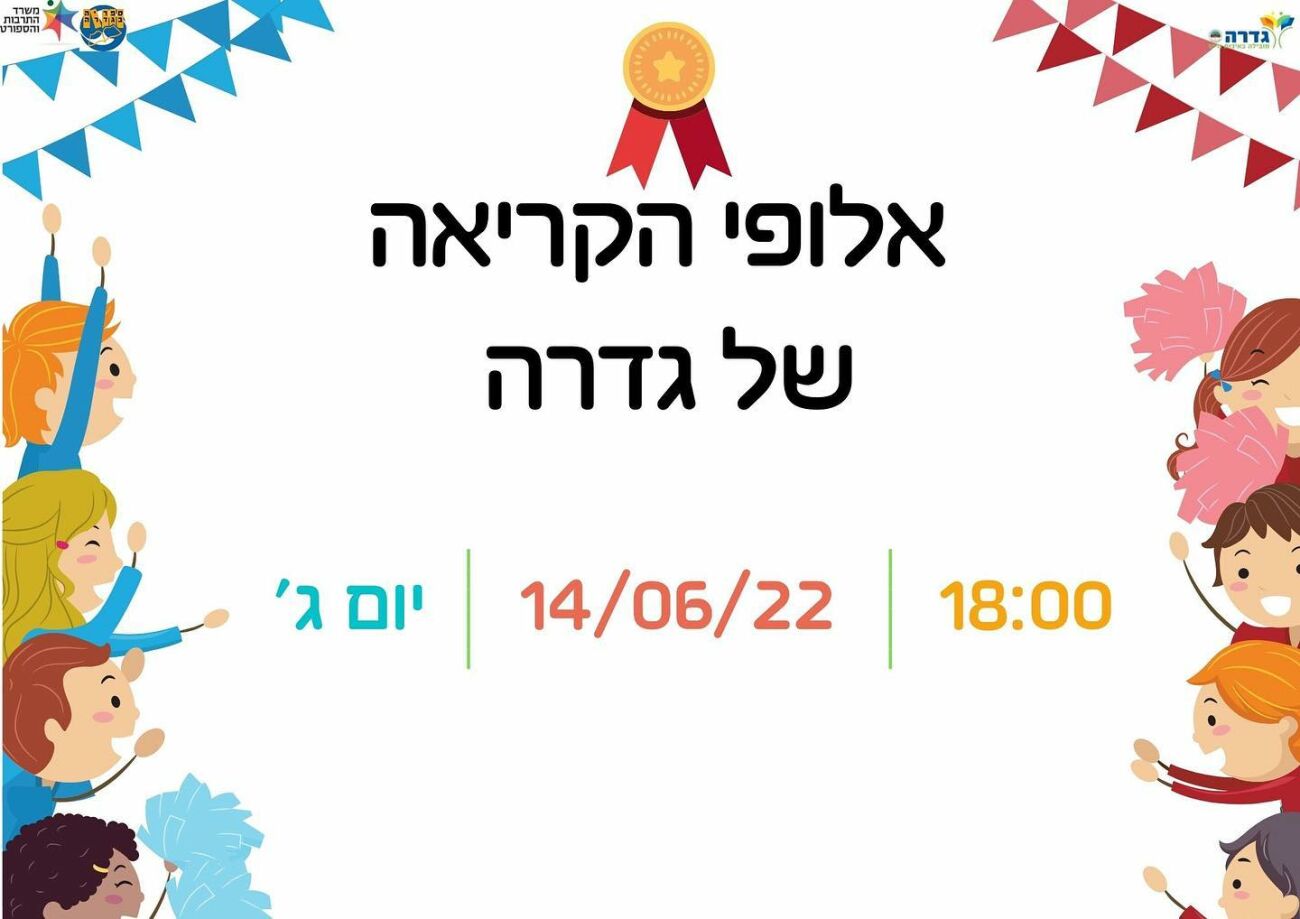 מי יהיו אלופי הקריאה של גדרה? ביום שלישי 14.6 יתקיים טקס אלופי הקריאה בו יוכרזו זהות התלמידים שקראו הכי הרבה ספרים בשנה האחרונה