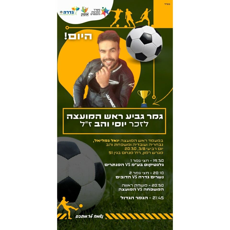 הערב (רביעי 3.8) יתקיים בגדרה גמר גביע ראש המועצה ע"ש יוסי והב במגרש רמון