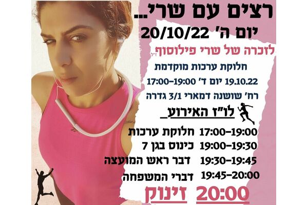 הערב (חמישי 20.10) יוזנק מגן שבע בגדרה "מירוץ רצים עם שרי" לזכרה של הפעילה החברתית ותושבת גדרה, שרי פילוסוף ז"ל