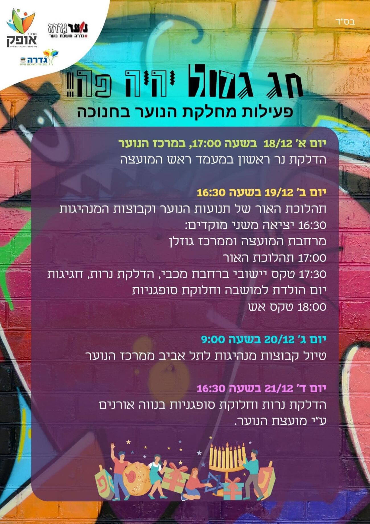 מחלקת הנוער בגדרה כבר מתכוננת לחנוכה והכינה לבני הנוער שלל אירועים שיתקיימו במהלך החג ביישוב.