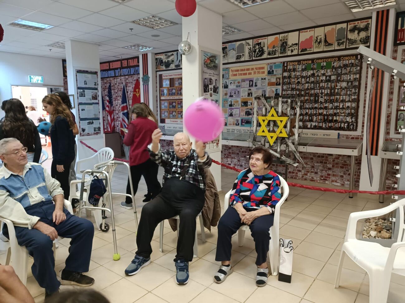 בסיום התלמידים חלקו לדיירים כדור לחיץ לחיזוק שרירי אצבעות הידיים