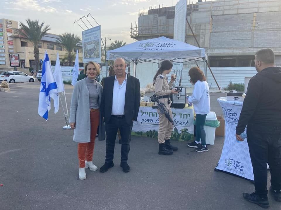 מתנדבי האגודה יחד למען החייל בגדרה חלקו שתייה חמה ומאפים לחיילי גדרה שחזרו לבסיסים