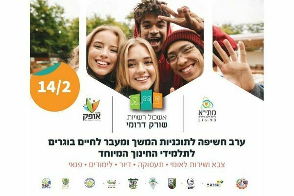 אשכול שורק דרומי יערוך ביום שלישי 14.2 ערב חשיפה לתוכניות המשך ומעבר לחיים בוגרים לתלמידי החינוך המיוחד בגדרה, מזכרת בתיה וקריית עקרון