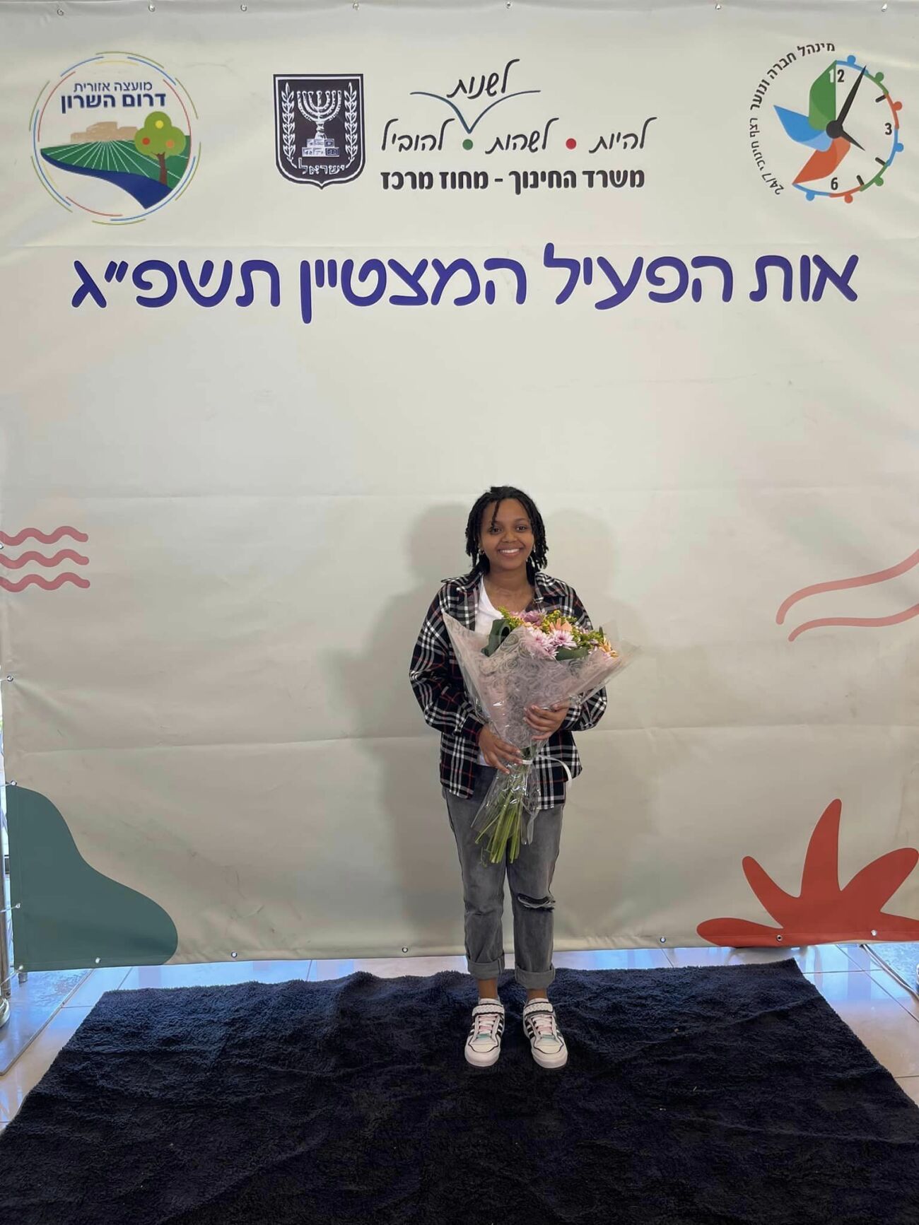 מצטיינת גדרה! תלמידת דרכא בגין, מעיין מלסה, קבלה את אות הפעיל המצטיין המחוזי של משרד החינוך