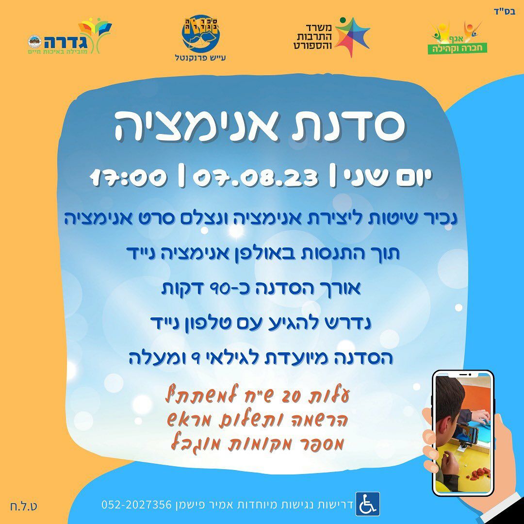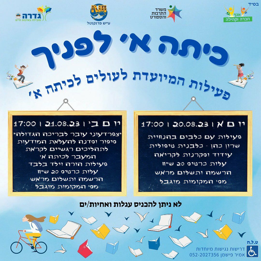 במהלך חודש אוגוסט יתקיימו בספריית גדרה סדנת אנימציה, פעילות הכנה לעולים לכיתה א ועוד