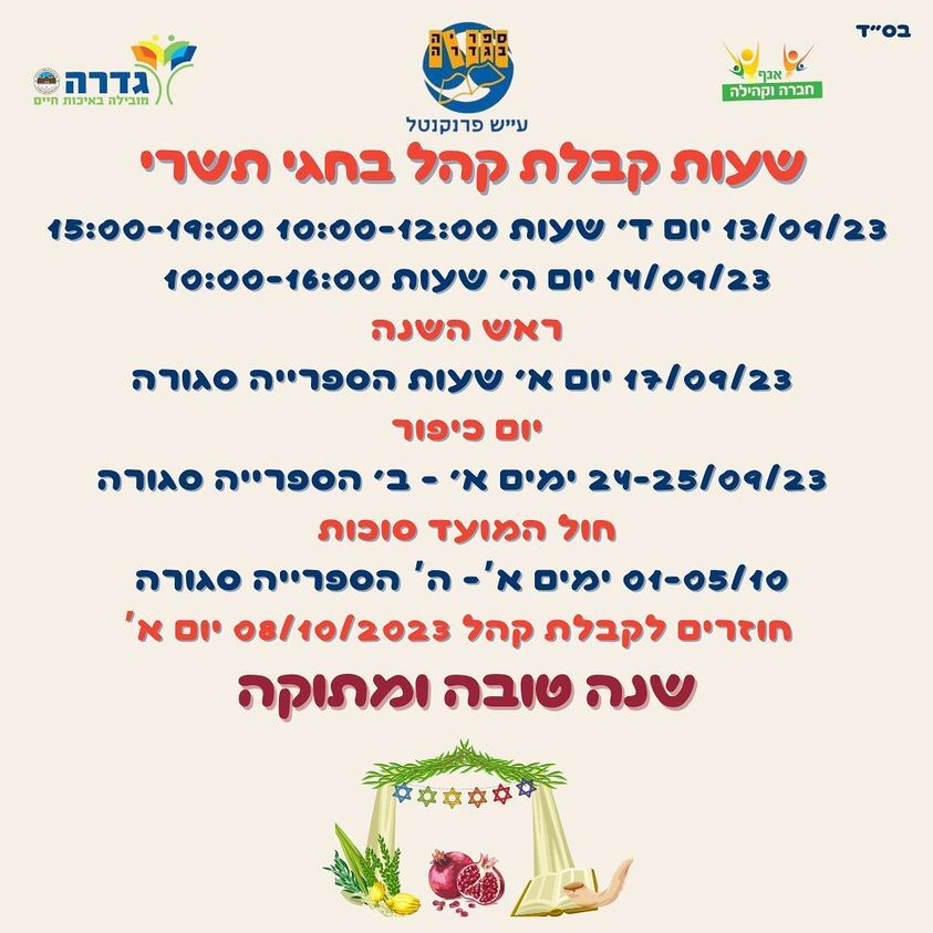 ספריית גדרה מעדכנת את שעות פעילות הספרייה במהלך חגי תשרי
