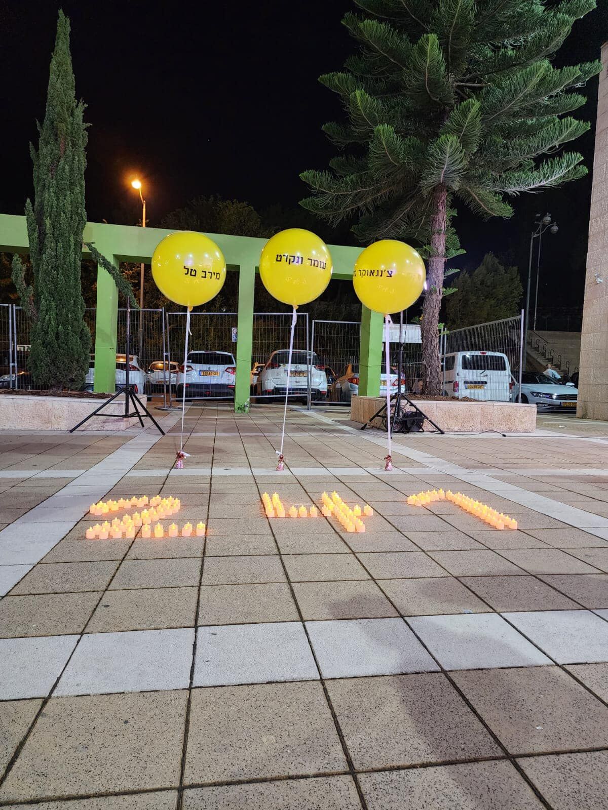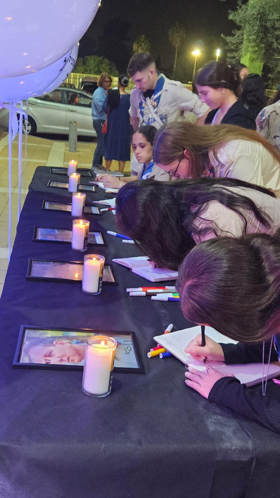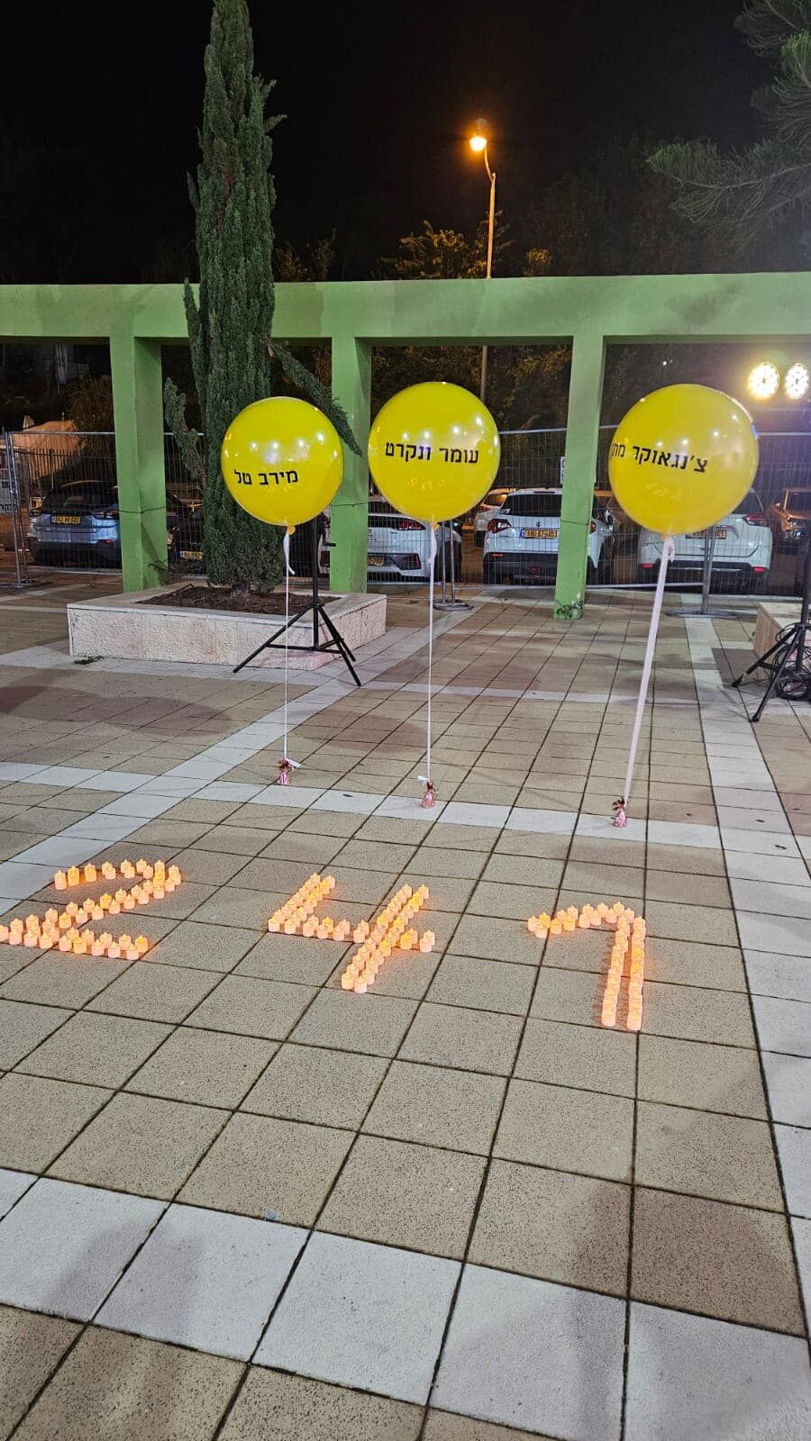 בטקס במרכז אופק, כשהנרות שוברים את החשיכה הבוגרות והבוגרים כתבו את שעל ליבם למשפחות השכולות במחברות זכרון והפריחו בלונים בתפילה ובתקווה שהחטופים ישובו הביתה.