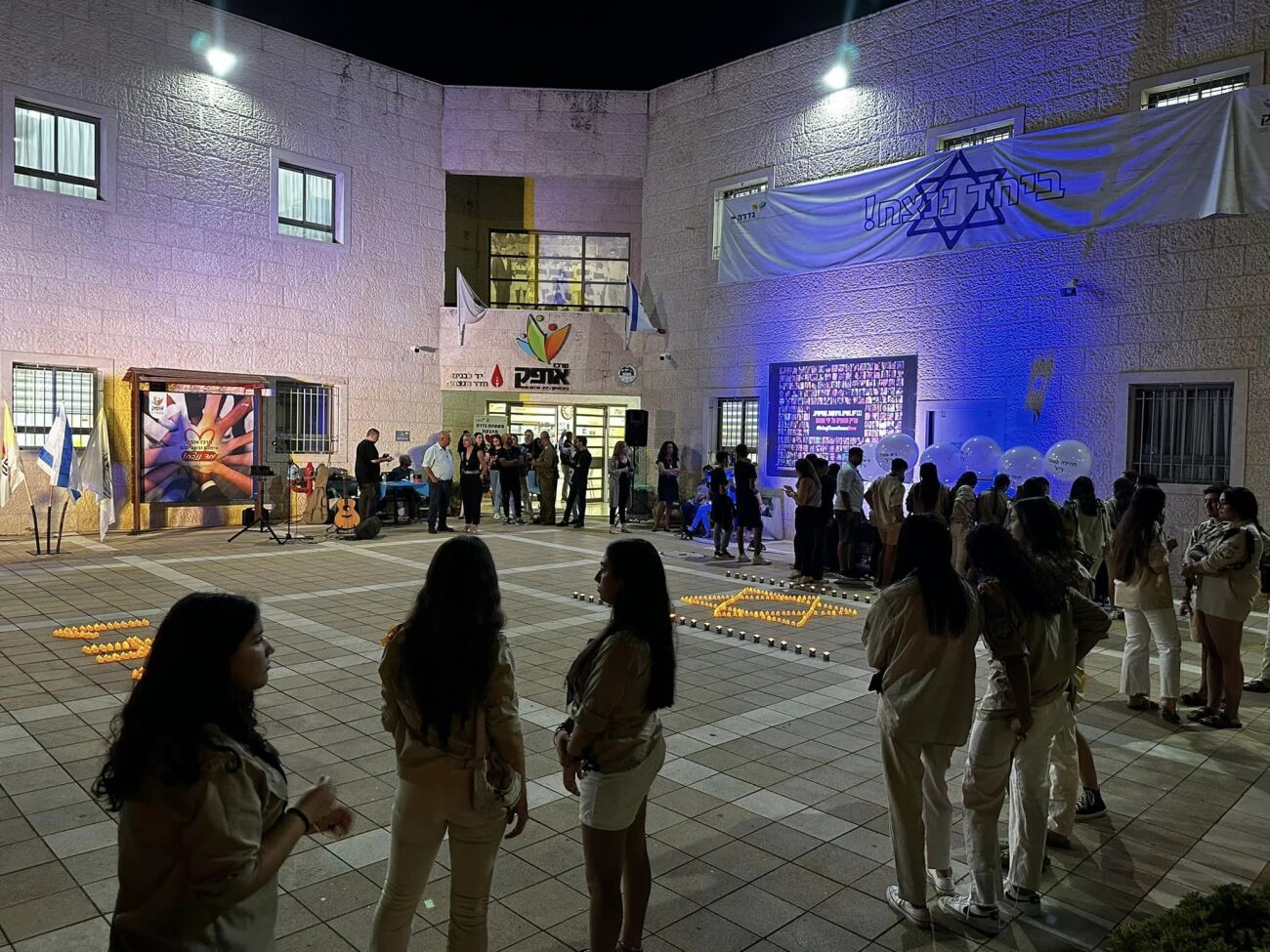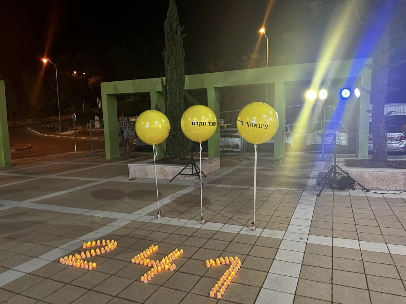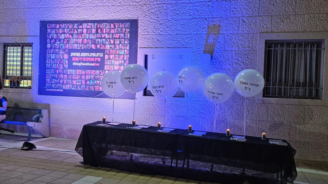 בטקס במרכז אופק, כשהנרות שוברים את החשיכה הבוגרות והבוגרים כתבו את שעל ליבם למשפחות השכולות במחברות זכרון והפריחו בלונים בתפילה ובתקווה שהחטופים ישובו הביתה.