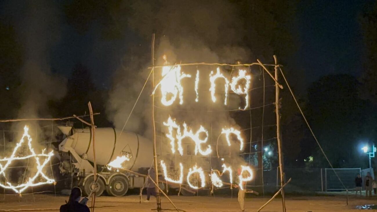 בנוסף הודלקו כתובות האש עם שמות החללים שנרצחו בשבת השחורה וקריאה להחזרת החטופים: bring them home