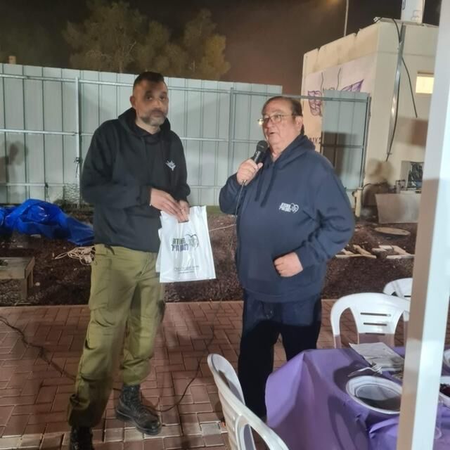 מתנדבי האגודה למען החייל בגדרה הגיעו לחגוג יחד עם החיילים את חנוכה והעניקו להם חבילות מתוקים וסט לחורף שתרמה קבוצת "סורגים גדרה" הפועלת במרכז אופק
