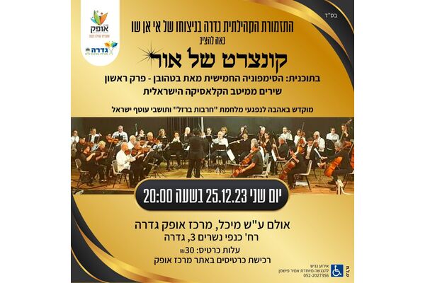 ביום שני 25.12 התזמורת הקהילתית גדרה תקיים קונצרט מיוחד המוקדש לנפגעי מלחמת חרבות ברזל ותושבי עוטף ישראל במרכז אופק