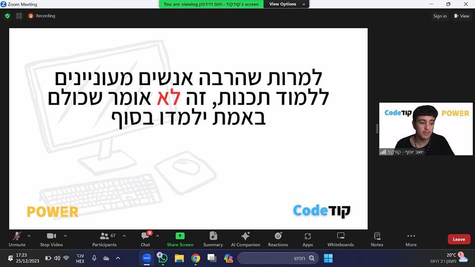 במקום השלישי בהאקתון זכה המיזם "קודCode", של תלמידי ביה"ס דרכא רמון בגדרה. המיזם מאפשר למידת תכנות באופן מקוון ובצורה מותאמת לילדים ונערים ("נוער מלמד נוער"), במטרה לאפשר ניצול מיטבי של הזמן בבית בתקופות מלחמה ללמידה ופיתוח תחביבים חדשים.