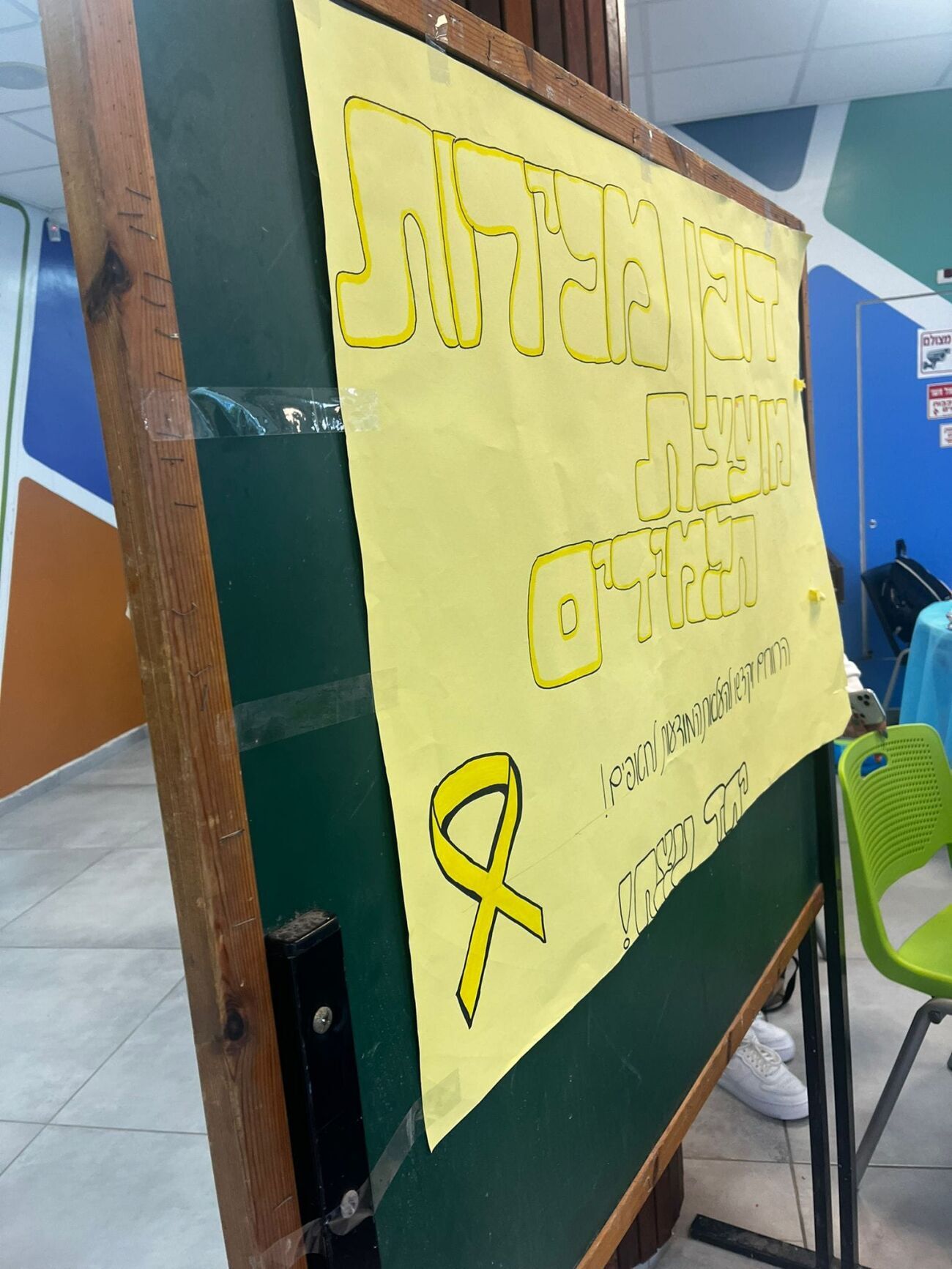 יום הורים בתיכון דרכא בגין בגדרה: מועצת התלמידים הקימה דוכן להעלאת המודעות לנושא החטופים