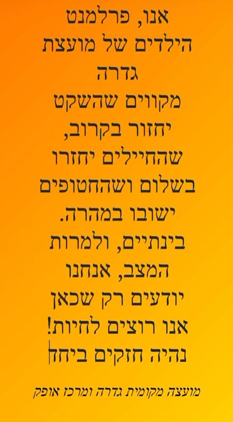 פרלמנט הילדים בגדרה בסרטון מיוחד הקורא לאיחוד "זה לא כל כך פשוט להיות כאן ילד"