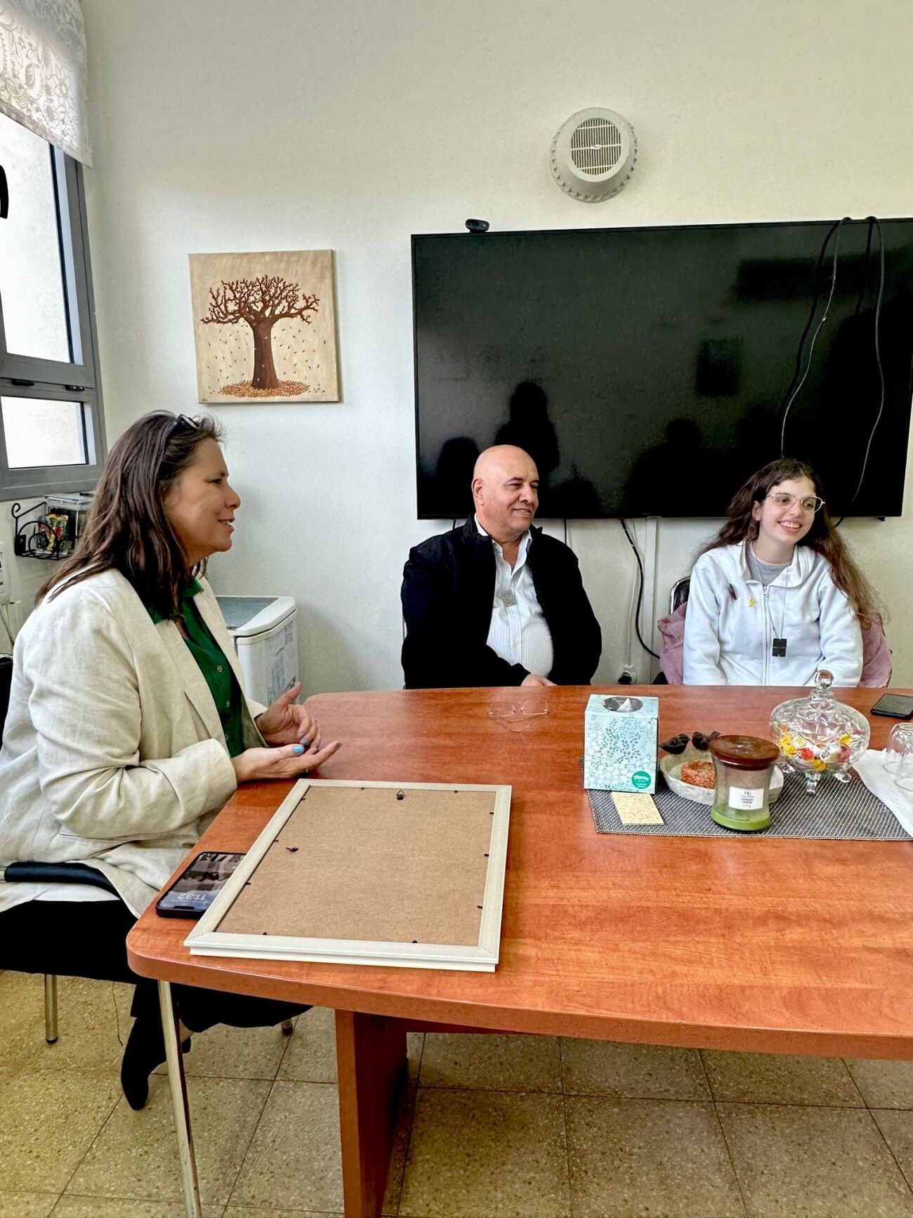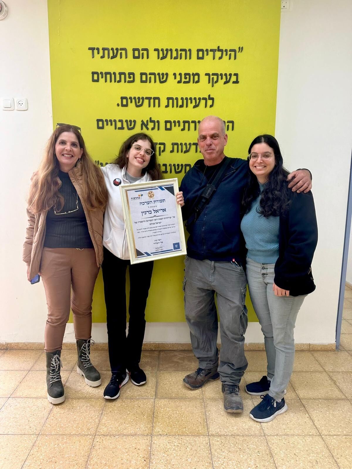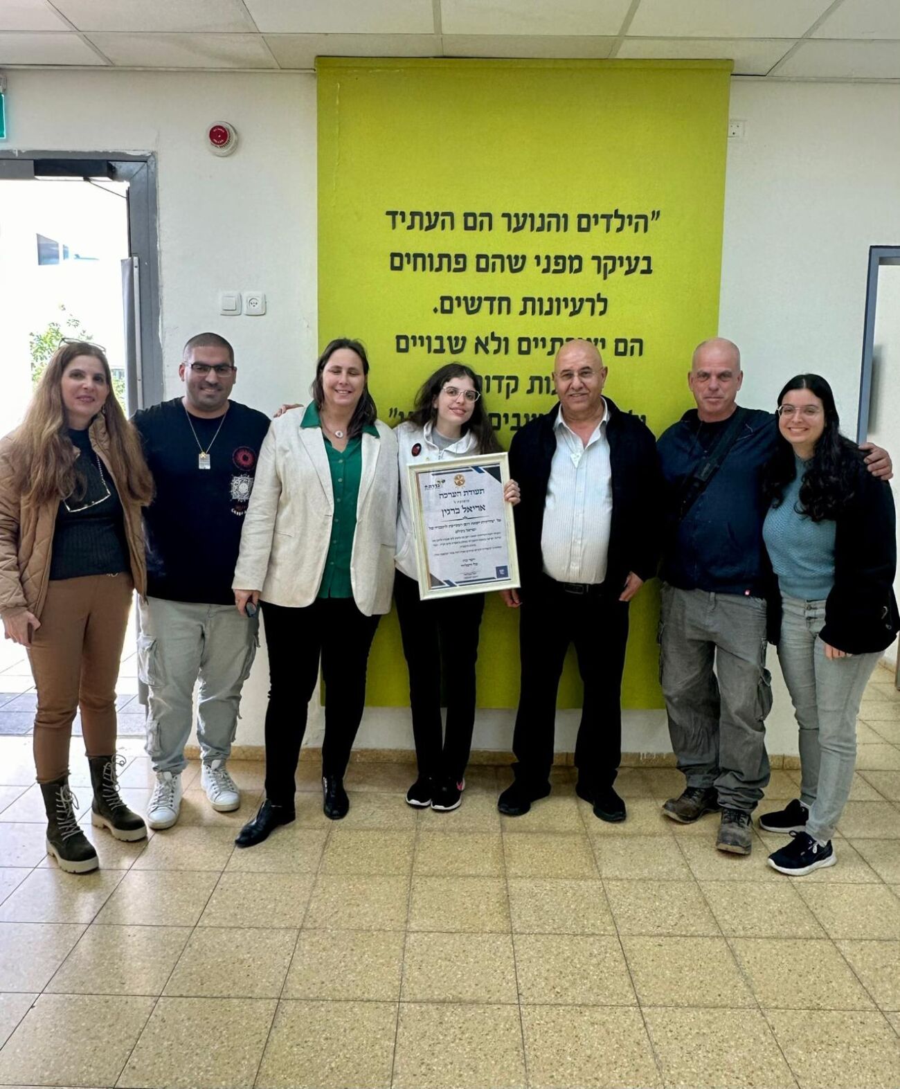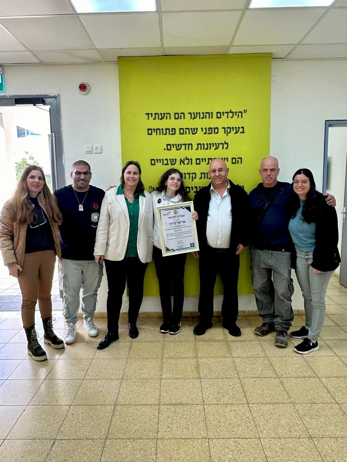 יואל גמליאל העניק תעודת הוקרה לתלמידת דרכא רמון, אריאל ברגין לאחר שהלוגו שעיצבה ייצג את מיזם ההסברה הבינלאומי של בני הנוער מישראל