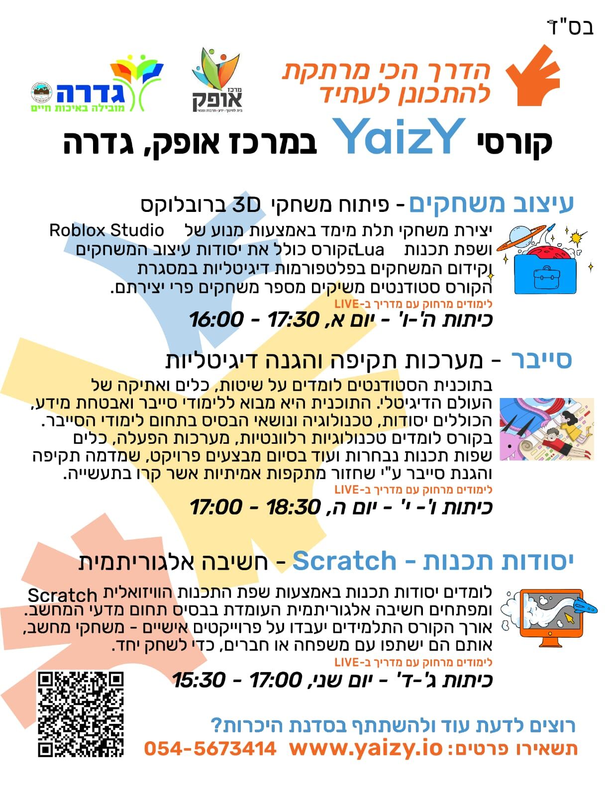 חדש במרכז אופק קורסים לעיצוב משחקים, סייבר ויסודות התיכנות לתלמידי גדרה
