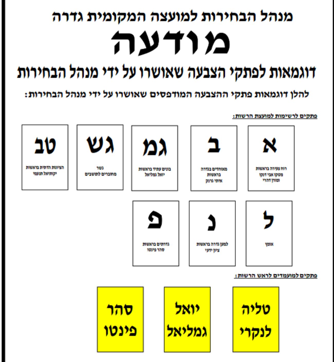 למען גדרה בראשות ציון ידעי- הרשימה תיוצג בקלפי באות נ